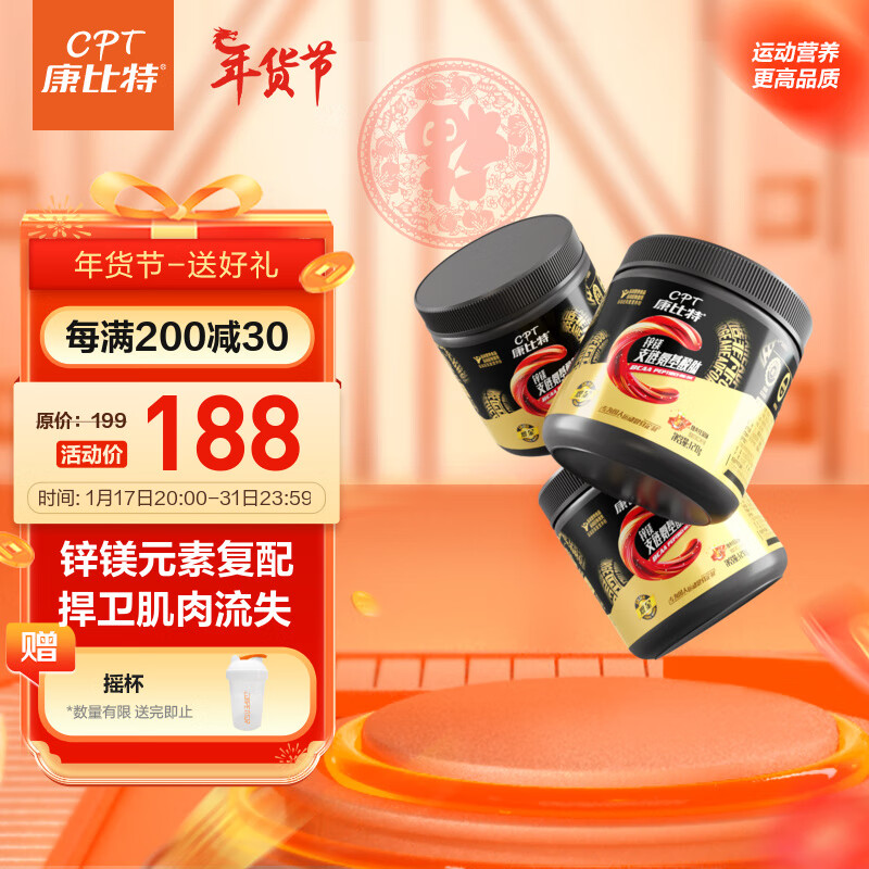 康比特锌镁支链氨基酸粉 锌镁BCAA运动冲剂健身增肌功能饮料能量饮料 锌镁支链氨基酸3罐/120g*3 劲爽红茶味价格:149.00元!
