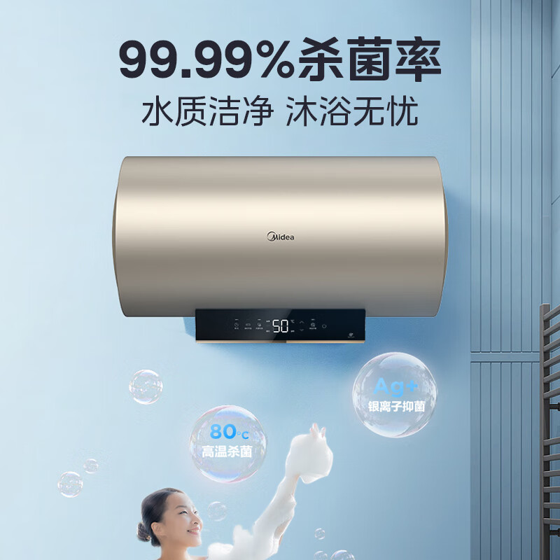 美的(Midea)80升电热水器2200W速热 双重净水 一级能效家用热水器F8022-X3S(HE)*价格:2299.00元!