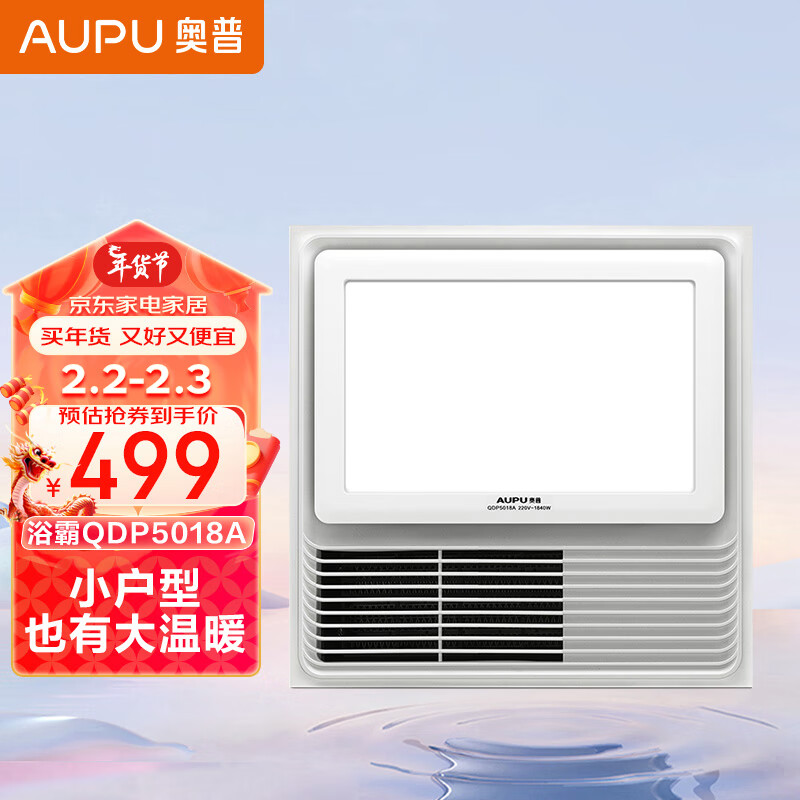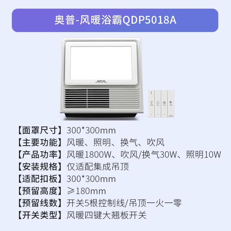 奥普(AUPU)浴霸QDP5018A集成吊顶风暖浴霸 换气吹风/风暖功能互锁 LED照明价格:549.00元!