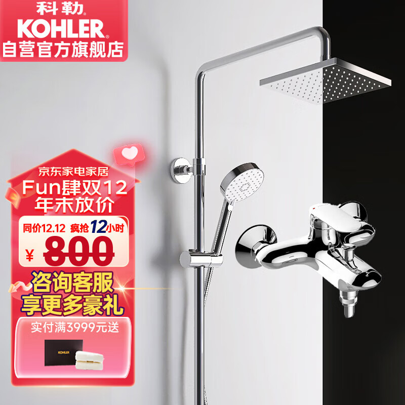 科勒(KOHLER)淋浴花洒套装三出水淋浴柱方型顶喷多功能可升降 性价比款77365T价格:1999.00元!