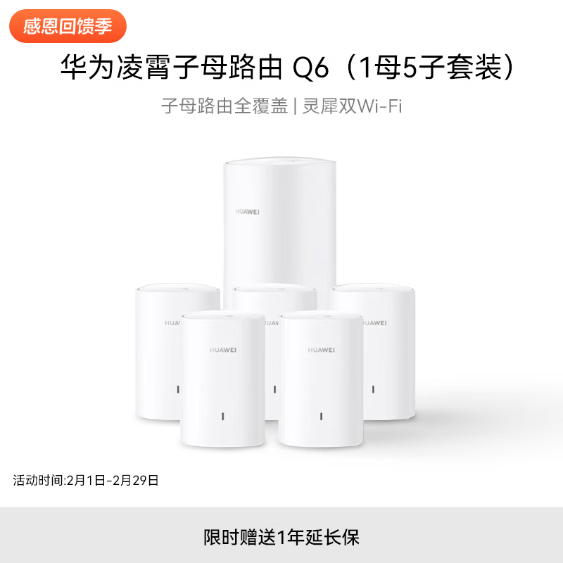 华为凌霄子母路由 Q6(1母5子套装)AX3000Mbps 千兆路由器 全屋WiFi 6+ 电力线版 无线穿墙王 电力猫价格:2498.00元!