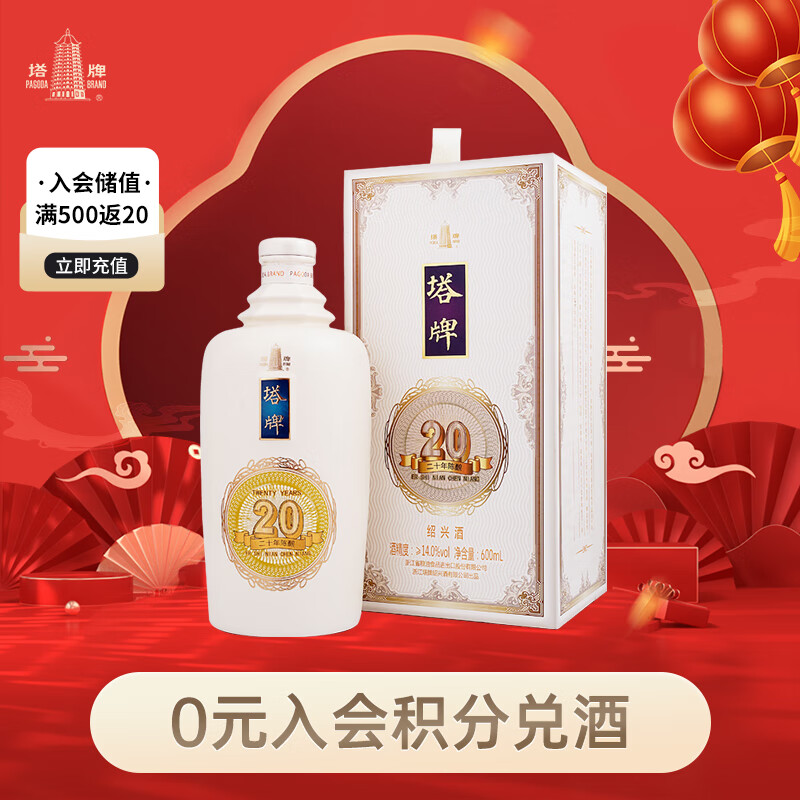 塔牌 花雕酒二十年 半干型 绍兴黄酒 600ml 单瓶礼盒装价格:315.00元!