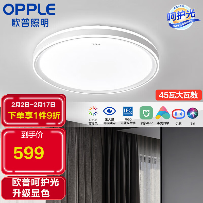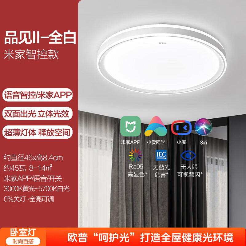 欧普(OPPLE)智能LED呵护光客卧吸顶灯具RA95米家智控MX460-D45-WLTT-02价格:665.00元!