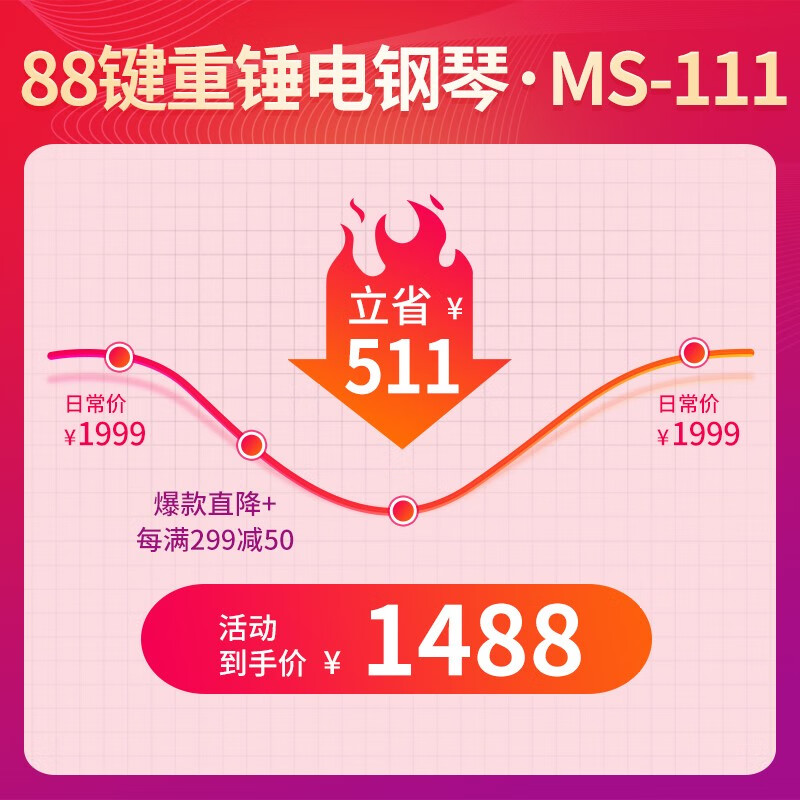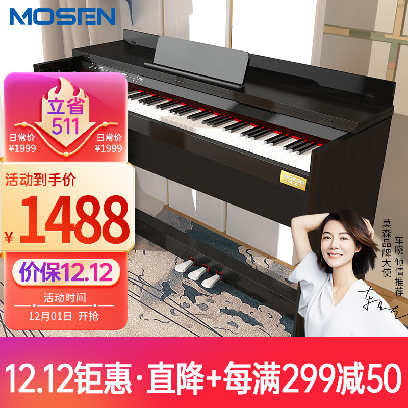 莫森(MOSEN)MS-111SP电钢琴 88键全重锤键盘电子数码钢琴 考级款典雅黑价格:1738.00元!