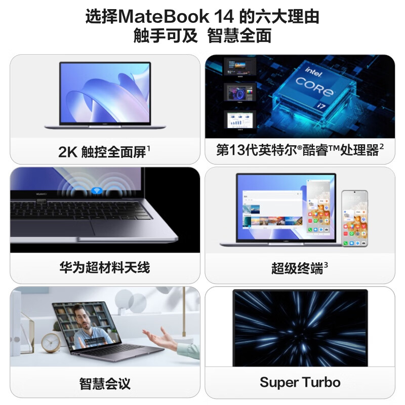 华为MateBook 14笔记本电脑 13代酷睿/2K触控屏/14英寸轻薄办公本/超级终端 i7 32G 1T 深空灰价格:6899.00元!