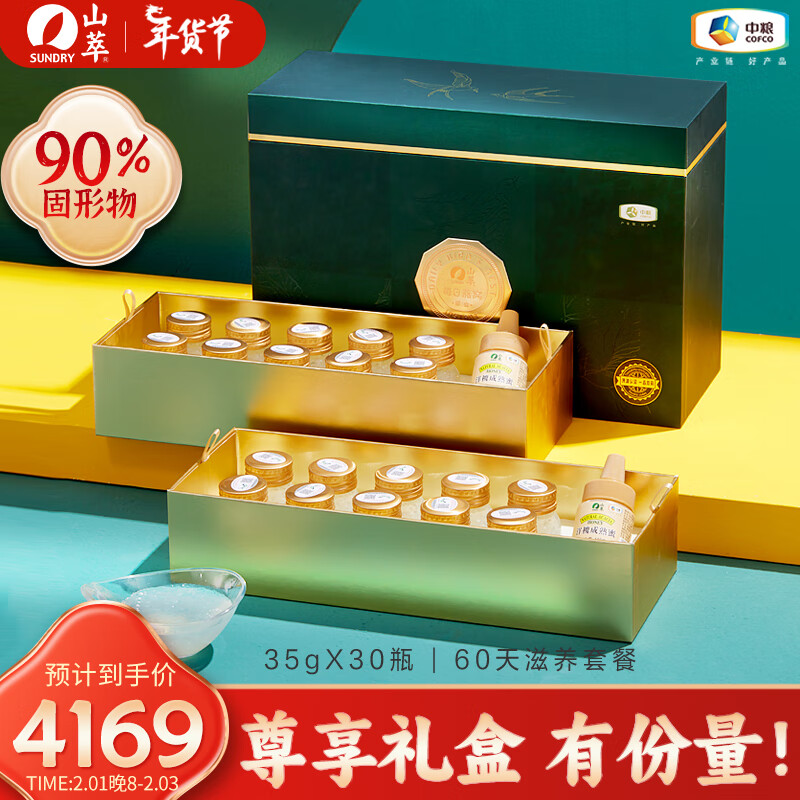 中粮山萃即食燕窝【年货送礼礼盒】无加糖燕窝孕妇滋补品营养品月子礼物35g*30瓶礼品送礼长辈父母家长价格:5533.00元!