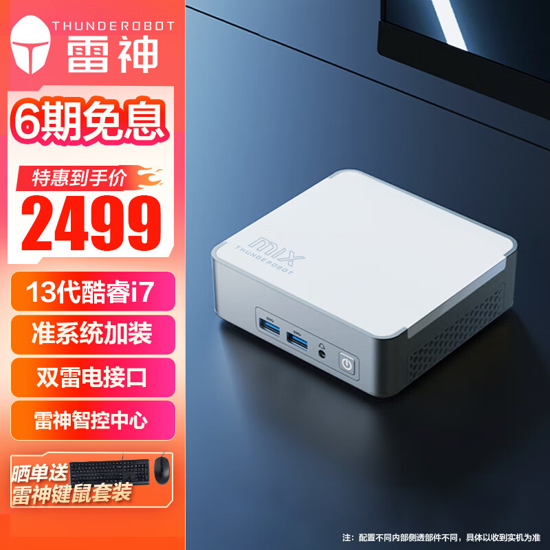 雷神(ThundeRobot)MIX 高性能商务办公电脑mini口袋台式NUC迷你主机准系统(13代i7-13620H 无内存硬盘 WIFI6E)价格:2499.00元!