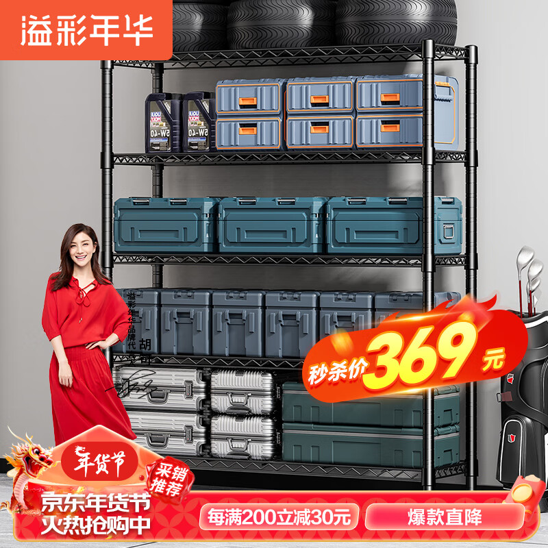溢彩年华 置物架落地多层仓储货架层架家用阳台储物架厨房收纳架子2805BK价格:389.00元!