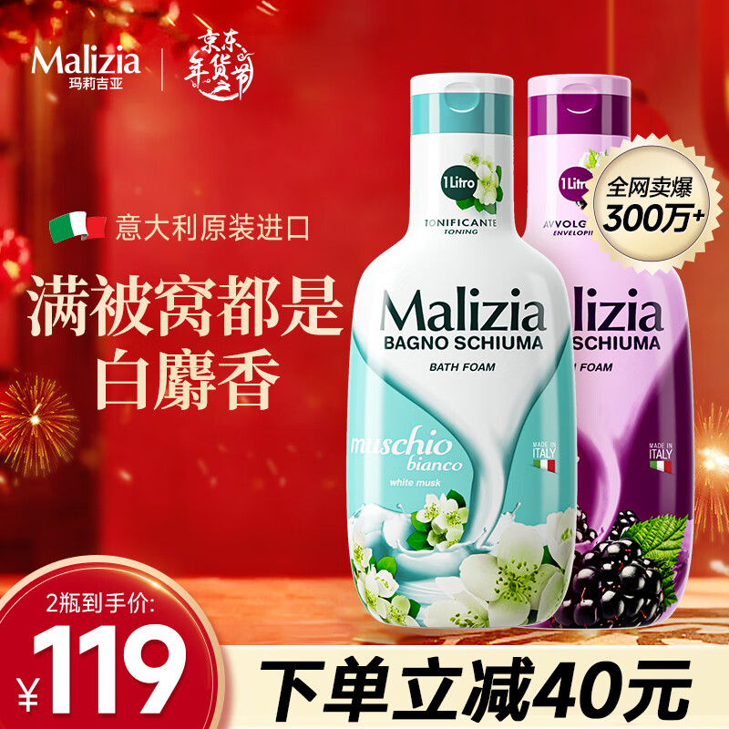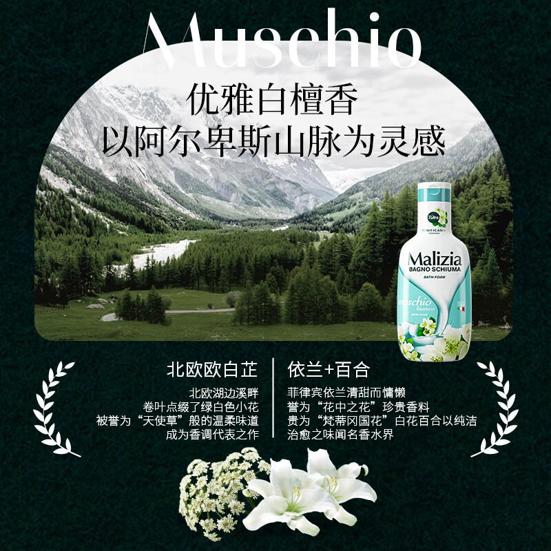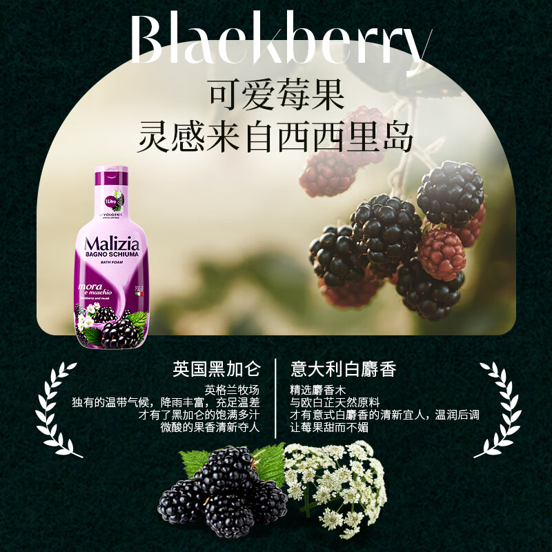 玛莉吉亚(MALIZIA)意大利原装进口香氛沐浴露2000ml(白麝香+莓果香)价格:159.00元!