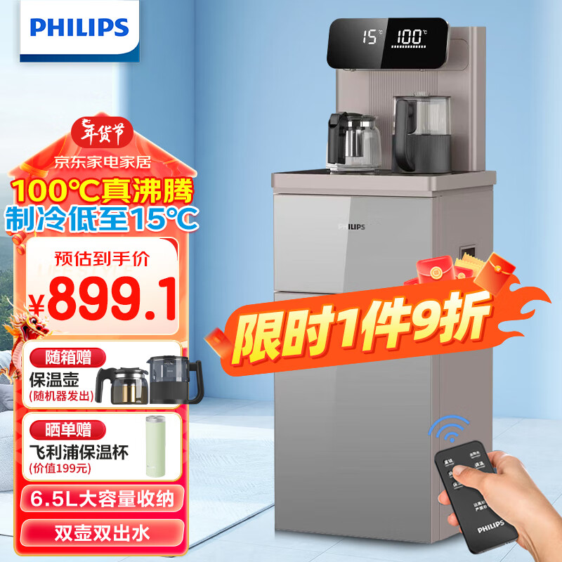 飞利浦(PHILIPS) 茶吧机家用立式饮水机全自动智能下置水桶办公室饮水机遥控自动上水温控保温ADD4887【冰热】金色价格:999.00元!