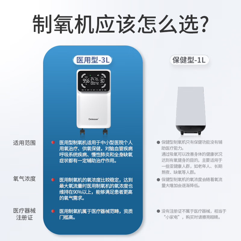 德乐思尔(Delesser) 制氧机家用氧气吸氧机医用级3L升孕妇老人制氧雾化一体机高原可用价格:2499.00元!
