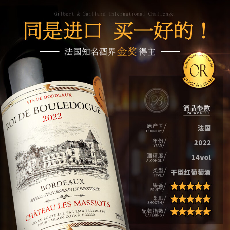 CANIS FAMILIARIS布多格法国原瓶进口红酒整箱 波尔多AOC 王爵干红葡萄酒750ml*6瓶价格:728.00元!