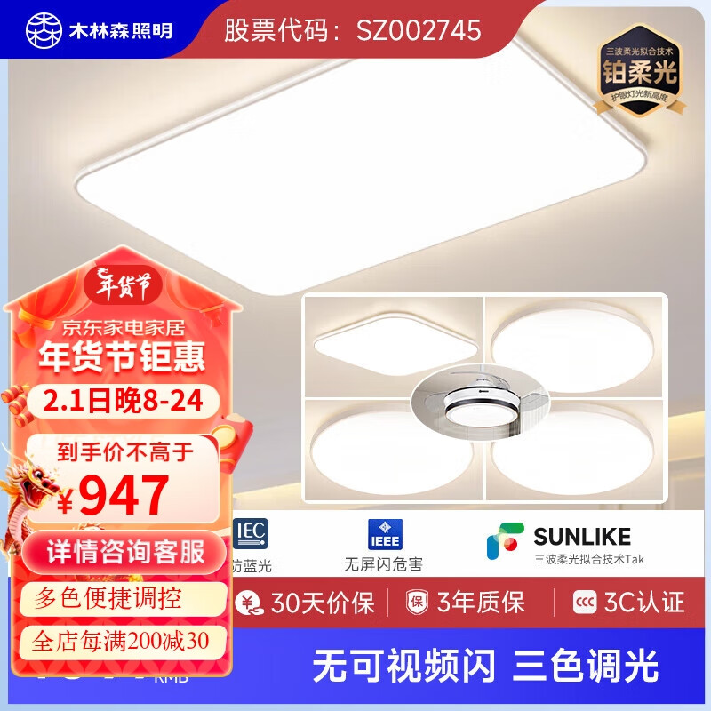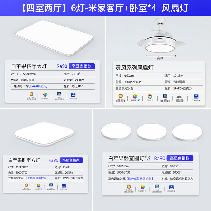 木林森照明吸顶灯客厅灯现代白苹果家用超薄百搭 Ra90 led灯四室两厅-风扇价格:1097.00元!