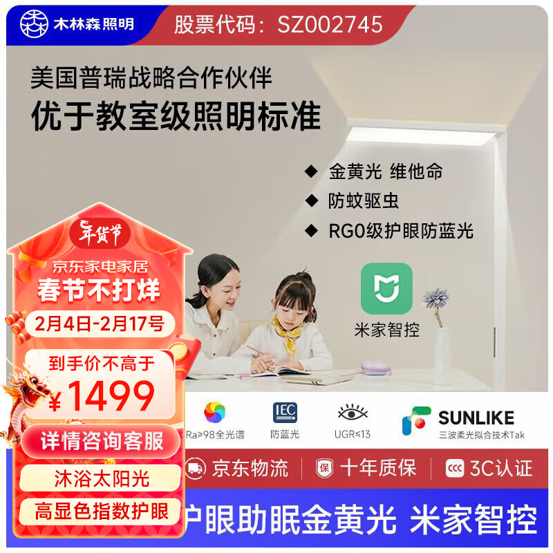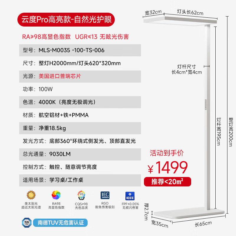 木林森照明全光谱落地护眼灯立式台灯儿童学习专用阅读书灯大路灯云度pro价格:1739.00元!