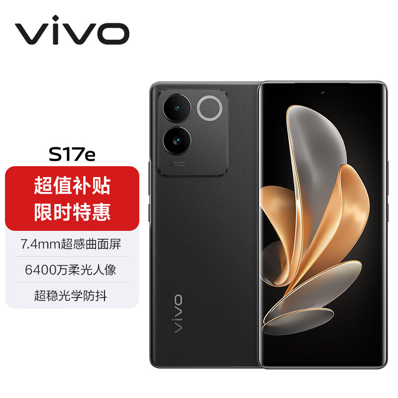 vivo S17e 8GB+128GB 星夜黑 7.4mm超感曲面屏 6400万柔光人像 超稳光学防抖 4nm天玑7200 5G 快充 拍照 手机价格:2099.00元!