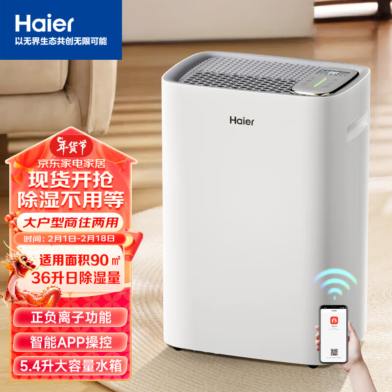 海尔(Haier)除湿机/抽湿机 京东小家智能生态 除湿量36升/天 家用地下室别墅工业除湿机app智控 CF36-PK1价格:1665.00元!