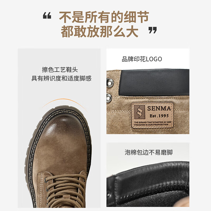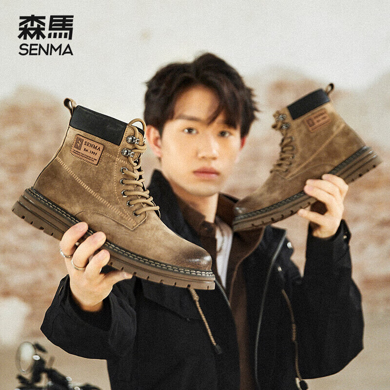 森馬(Senma)潮流百搭英伦高帮马丁靴系带厚底休闲男靴612339801 卡其色 42码价格:289.00元!