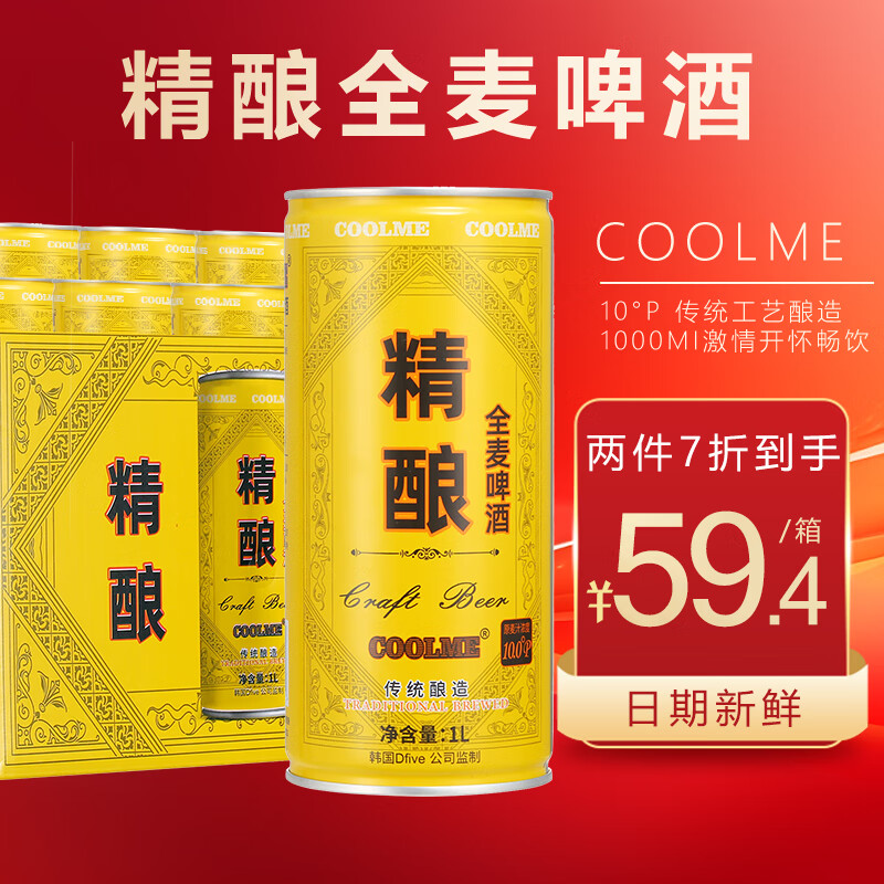 CoolMe全麦精酿啤酒 1L*6听 整箱装 国产 年货送礼价格:84.90元!