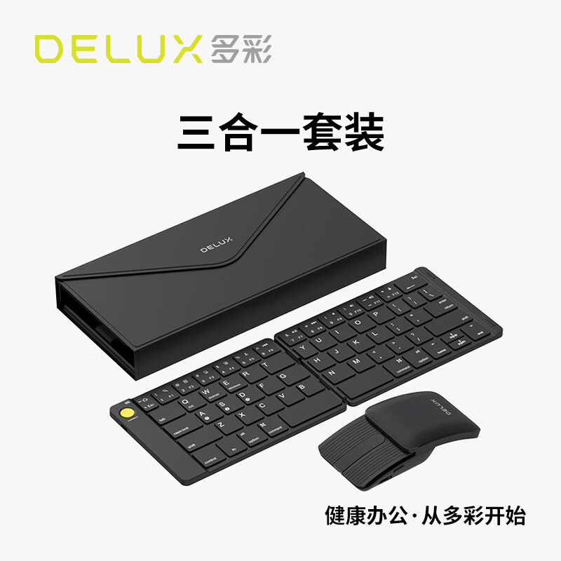 多彩(DeLUX)MF10超薄折叠无线蓝牙键鼠套装激光翻页折叠空中鼠标便携移动办公手机平板ipad电脑通用黑色价格:379.00元!