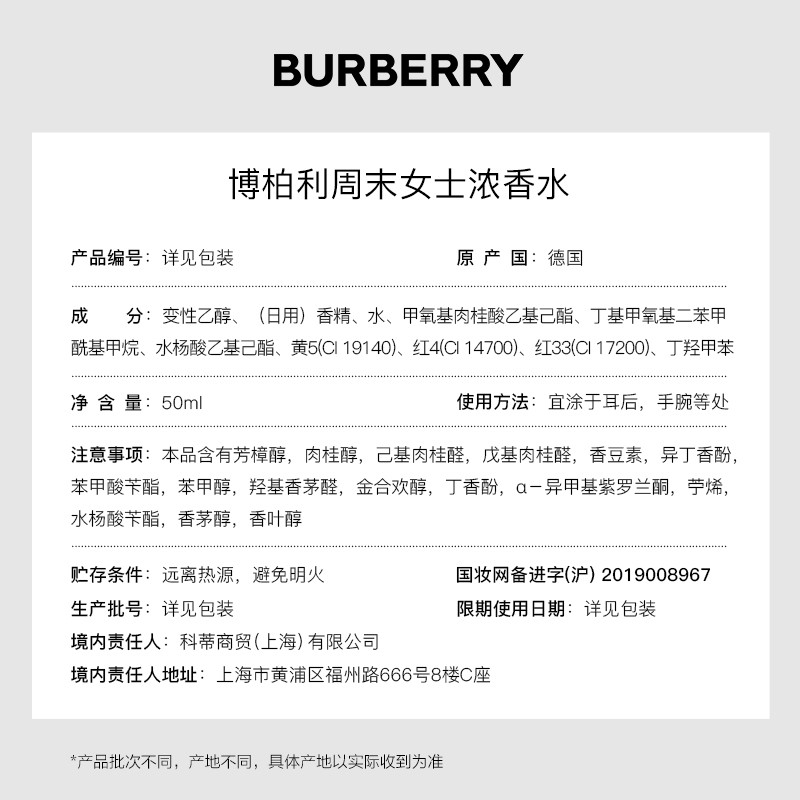 博柏利(BURBERRY)女士香氛 50ml(浓香水) 新年情人节生日礼物送女友送女生价格:589.00元!