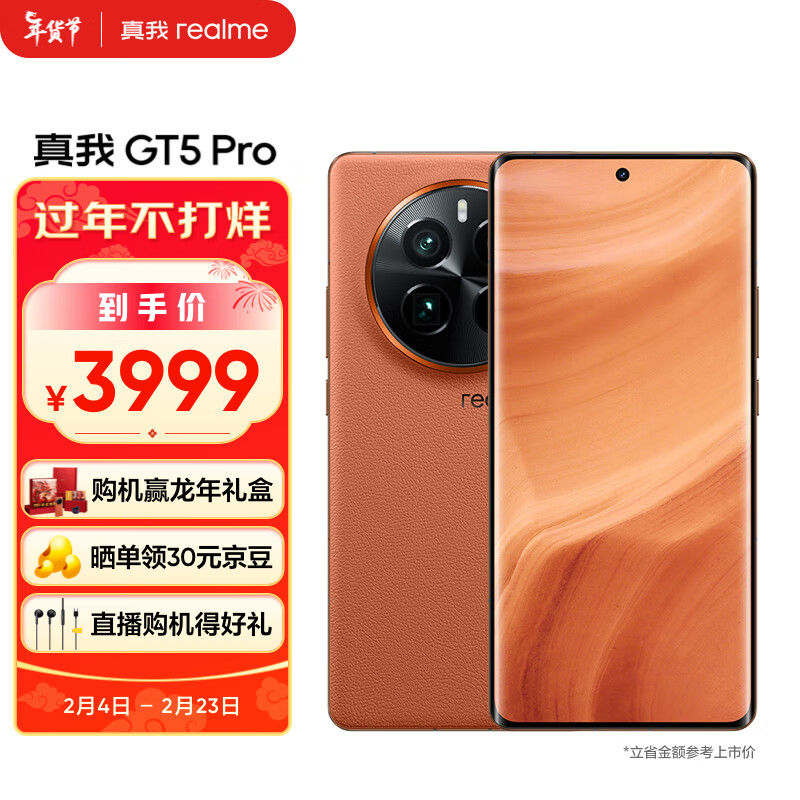 realme真我GT5 Pro第三代骁龙8旗舰芯 IMX890潜望长焦 4500nit无双屏 5G游戏旗舰手机 16GB+512GB赤岩价格:3999.00元!