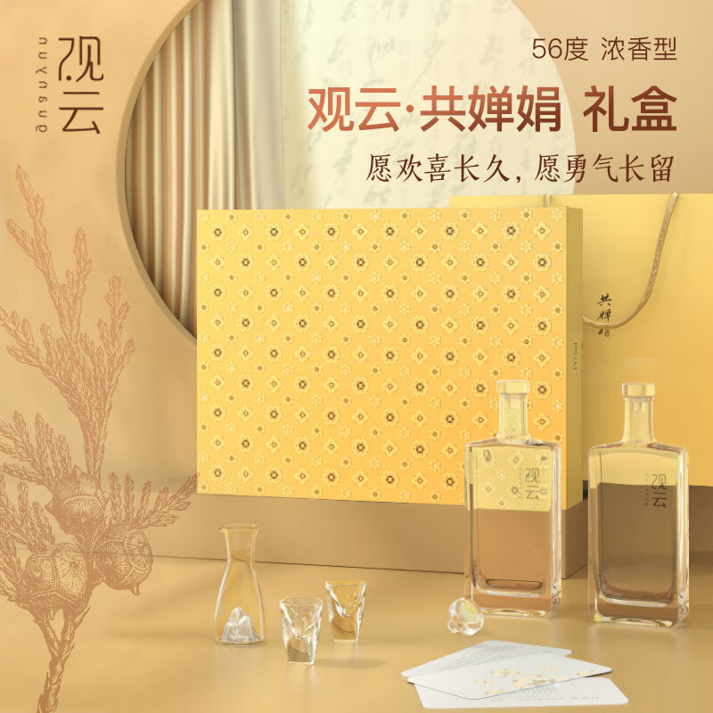观云共婵娟 浓香型白酒 56度 500ml*2瓶 礼盒装 含酒具【年货送礼】价格:503.00元!