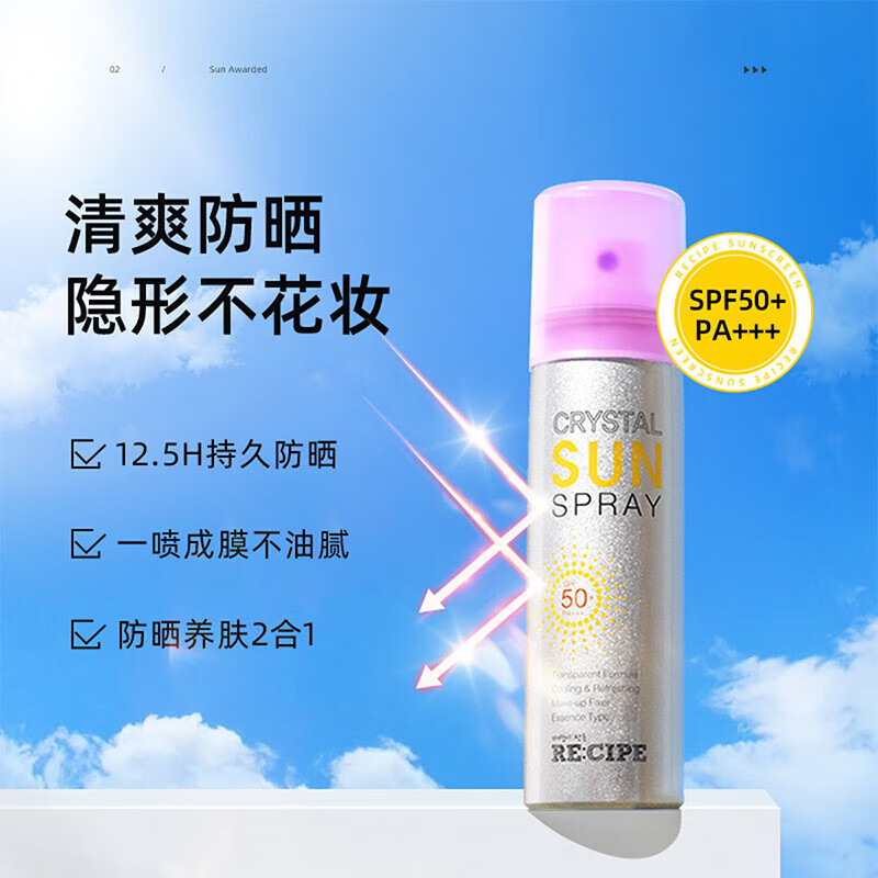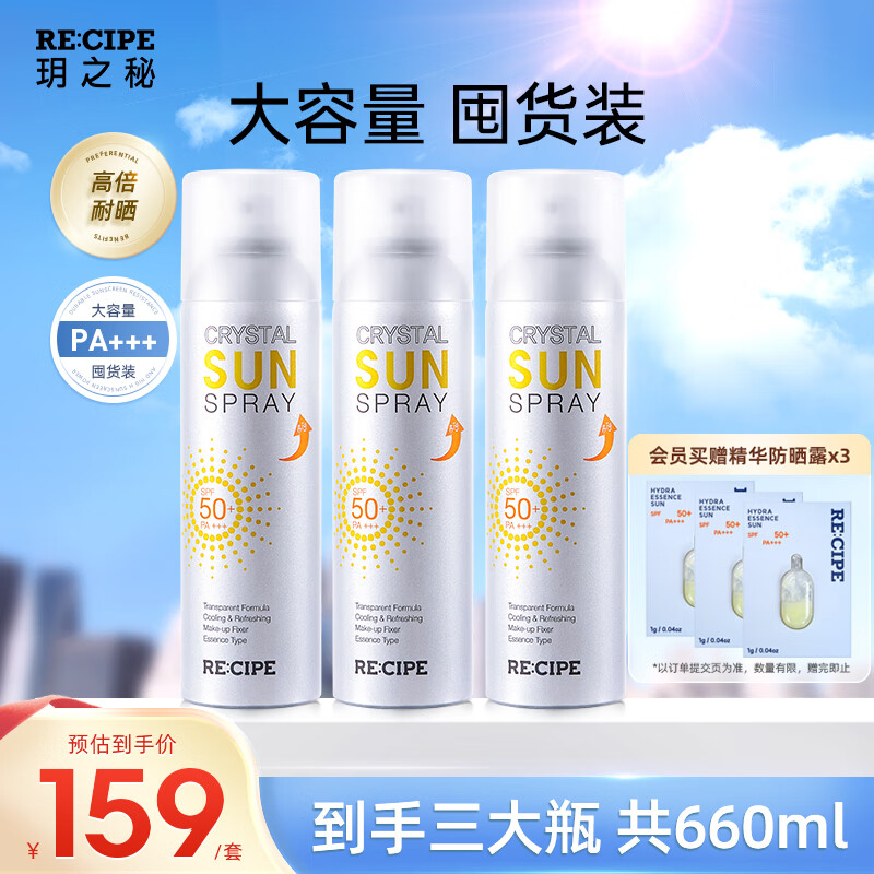 RE:CIPE玥之秘水晶防晒喷雾220ml*3 沙滩海边全身防晒霜男女军训SPF50+价格:169.00元!