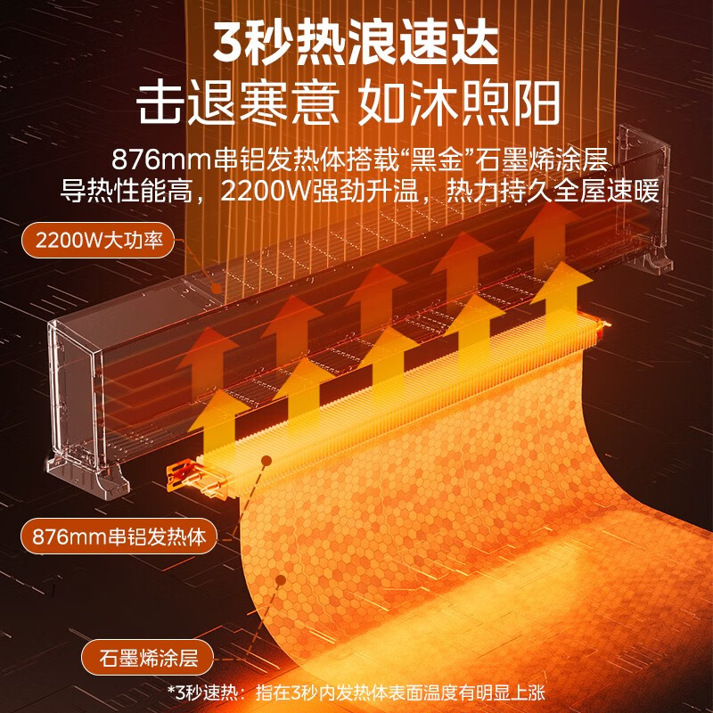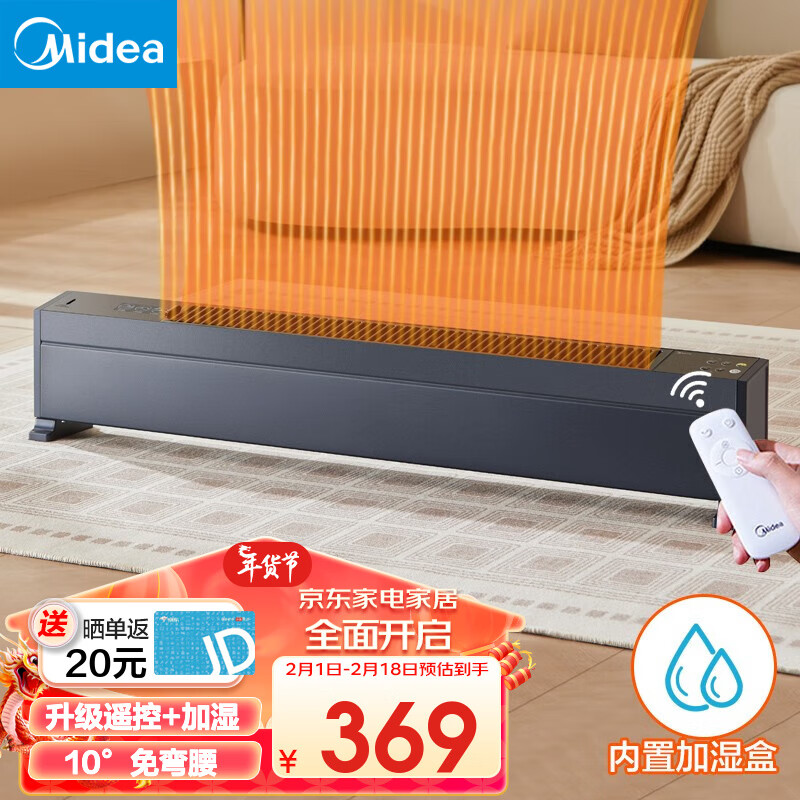美的(Midea)石墨烯踢脚线 取暖器家用 电暖器 电暖气片 暖风机家用 IP24防水除菌移动地暖烤火炉遥控加湿可选 【遥控+加湿】TDS价格:499.00元!