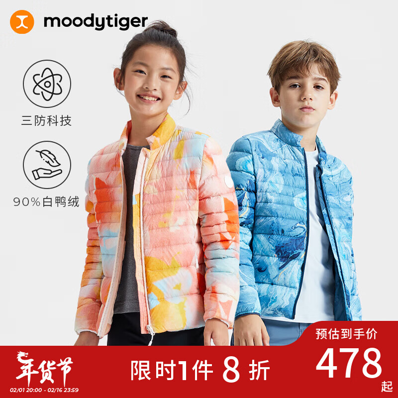 moodytiger儿童轻薄羽绒服23年秋冬季印花中性男女童三防保暖鸭绒服价格:598.00元!