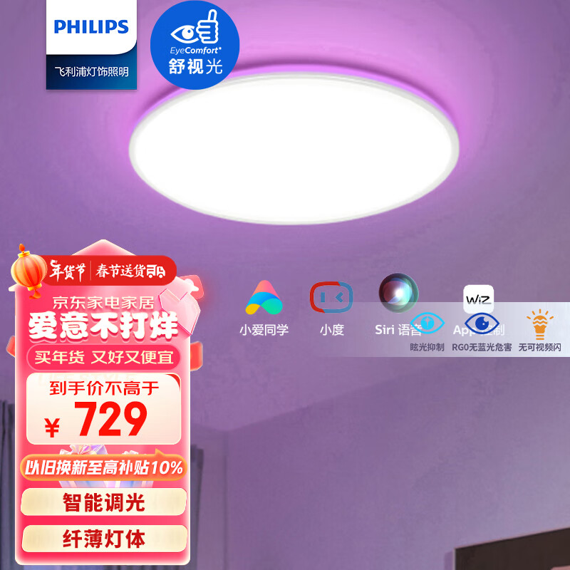 飞利浦智能卧室彩光吸顶灯32W价格参考: