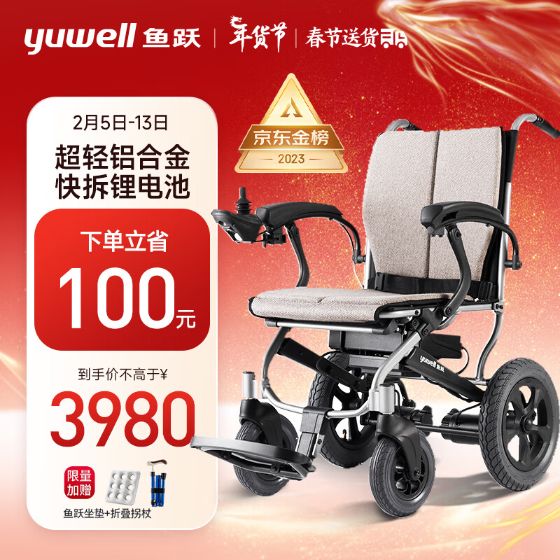 鱼跃(yuwell)电动轮椅老人全自动折叠轻便D130FL残疾人智能轻便轮椅代步车三元锂电池版12Ah价格:4080.00元!