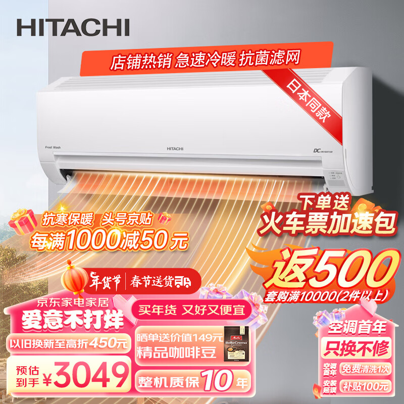 日立(HITACHI)白熊君 新3级能效 1匹全直流变频冷暖空调挂机低耗节能健康除菌大风量 以旧换新RAK/C-PE09PHBPC价格:3199.00元!