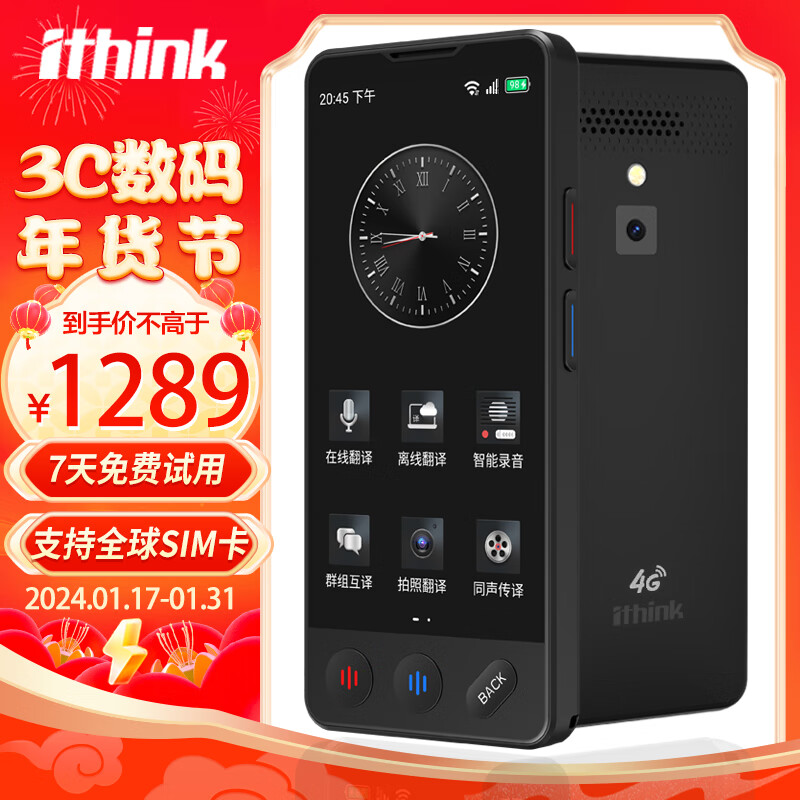 Ithink翻译机 多国语言4G翻译器同声翻译拍照录音离线语音翻译出国商务旅游随身带口语实时翻译笔价格:1499.00元!