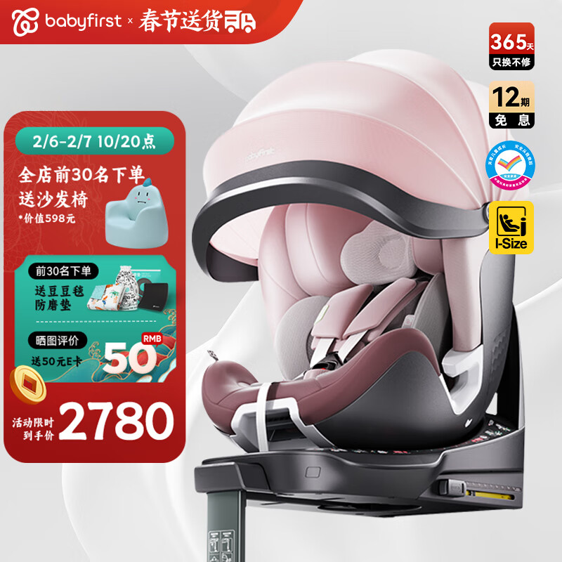 宝贝(Babyfirst)灵悦Pro婴儿童座椅汽车用0-4-7岁360度旋转宝宝 海贝粉R155B价格:3380.00元!