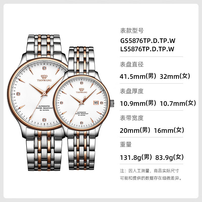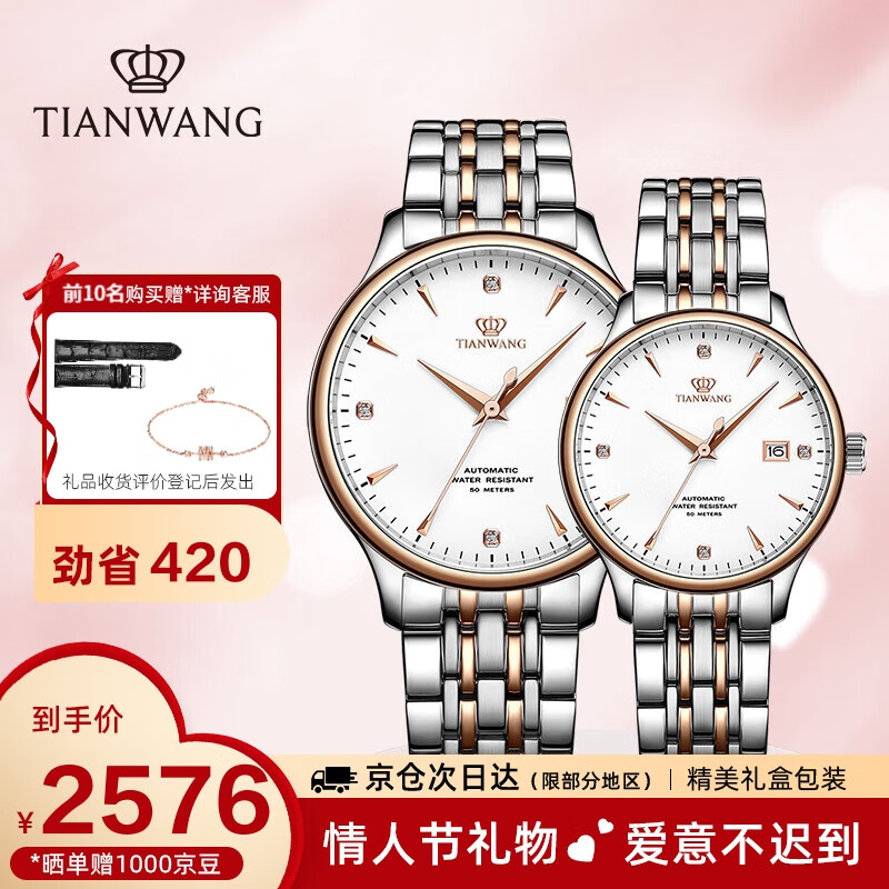 天王(TIAN WANG)手表情人节礼物昆仑系列钢带机械对表GS&LS5876TP.D.TP.W价格:2996.00元!