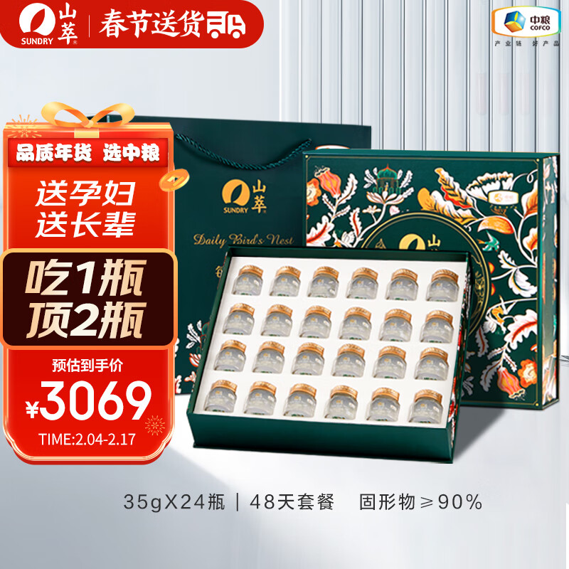 中粮山萃即食燕窝【年货礼盒送礼】无加糖燕窝孕妇滋补品营养品月子礼物35g*24瓶 妈妈礼物 送礼长辈父母家长价格:3799.00元!