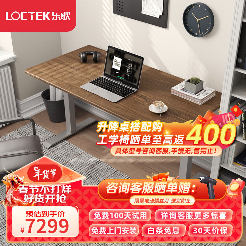 乐歌电动升降桌电脑桌办公桌书桌学习桌 E5-N/1.6m 实木黑胡桃木套装价格:8079.00元!