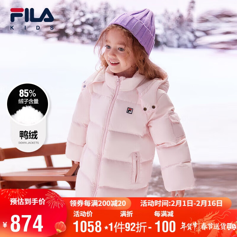 FILA斐乐童装外套2023秋冬中大童男童女童亮面中长款羽绒服价格:1058.00元!