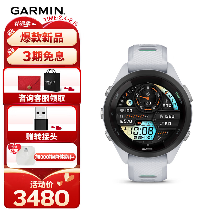 Forerunner265S白色心率HRV跑步铁三游泳户外运动手表送礼物价格:3480.00元!