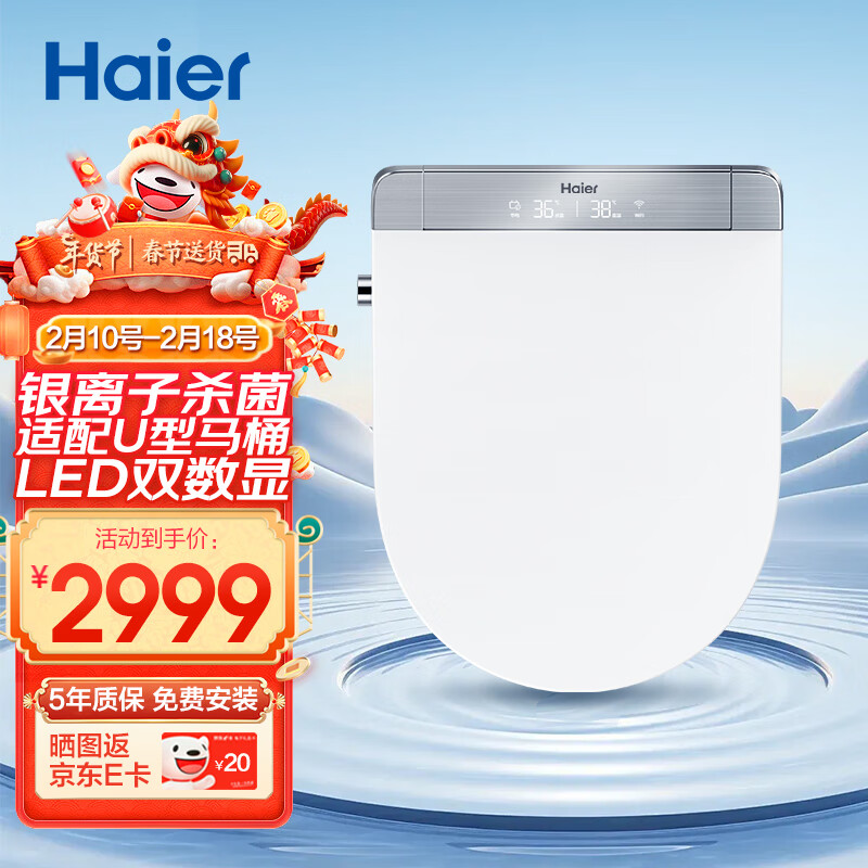 海尔(Haier)智能马桶盖 银离子杀菌自动润壁款 电动加热抗菌除臭数显 X6-28U1价格:3299.00元!