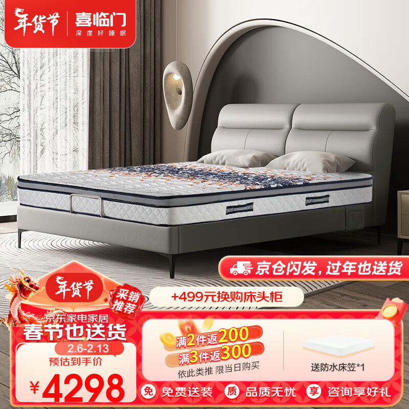 喜临门乳胶独袋弹簧3D椰棕床垫+真皮软床 蝶梦+夜曲Dream1.8x2米价格:6098.00元!