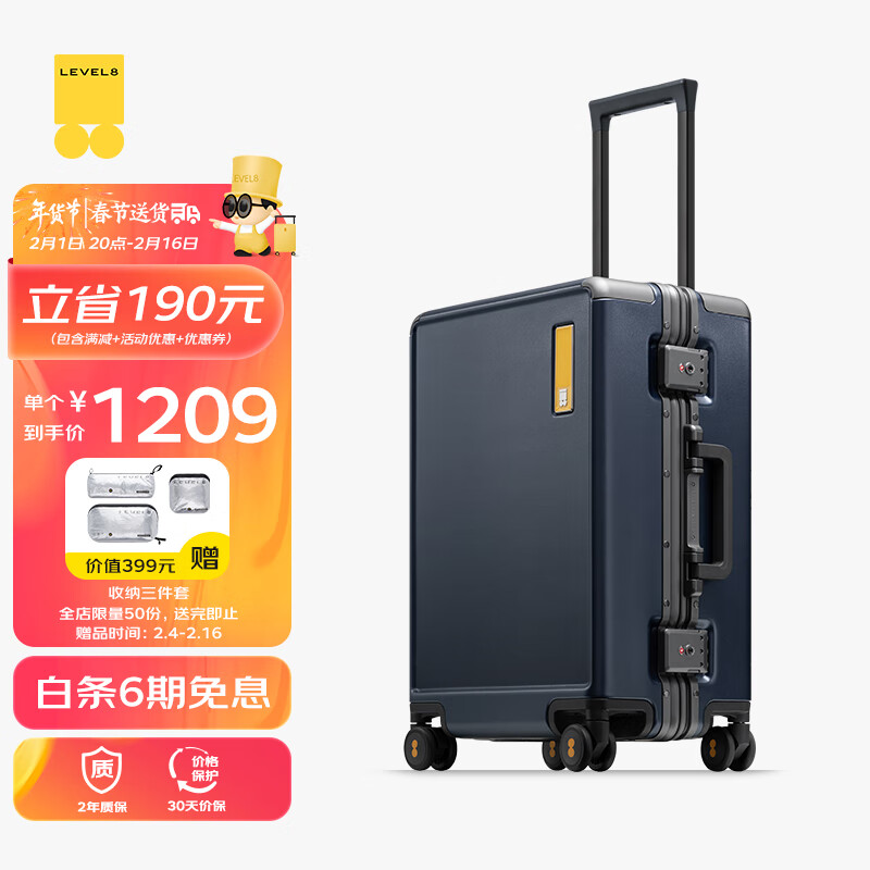 地平线8号(LEVEL8)登机行李箱男女粗铝框旅行箱20英寸拉杆密码箱PC拉杆箱氦系列蓝色价格:1209.00元!