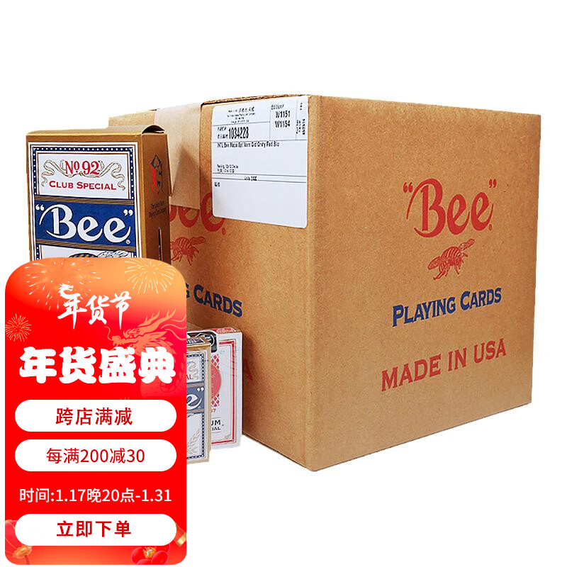 Bee 小蜜蜂扑克牌 娱乐比赛专用纸牌 整箱批发棋牌144副(72红72蓝)价格:3309.00元!