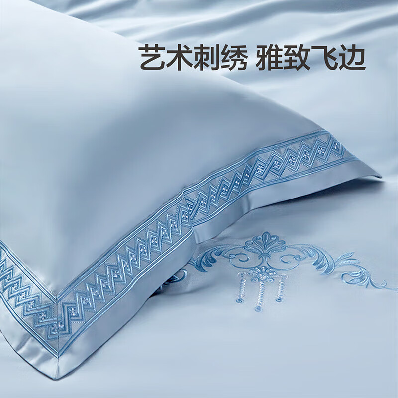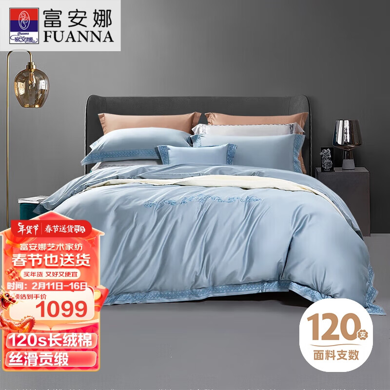 富安娜家纺 120s纯棉四件套双股长绒棉贡缎双人加大床单被套230*229cm价格:2999.00元!