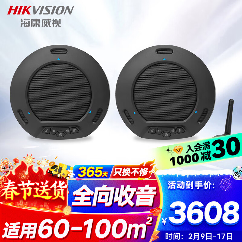 HIKVISION海康威视视频会议全向麦克风级联扬声器360°拾音USB即插即用无线适配器设备价格:3638.00元!