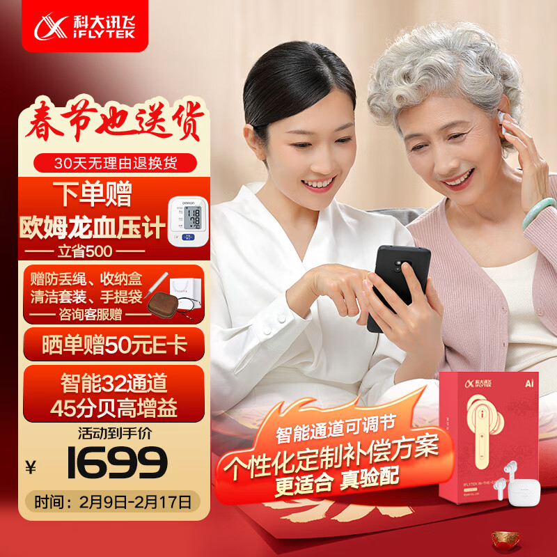 科大讯飞耳内式助听器老年人耳聋耳背无线入耳式隐形充电耳机 中重度32通道双耳降噪-尊享礼盒版【白色】价格:2199.00元!