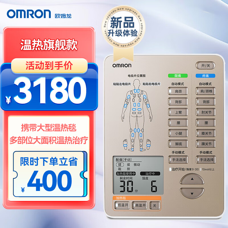 欧姆龙(OMRON)中低频治疗仪温热款 双通道含大型温热毯 理疗仪器HV-F9551价格:3580.00元!