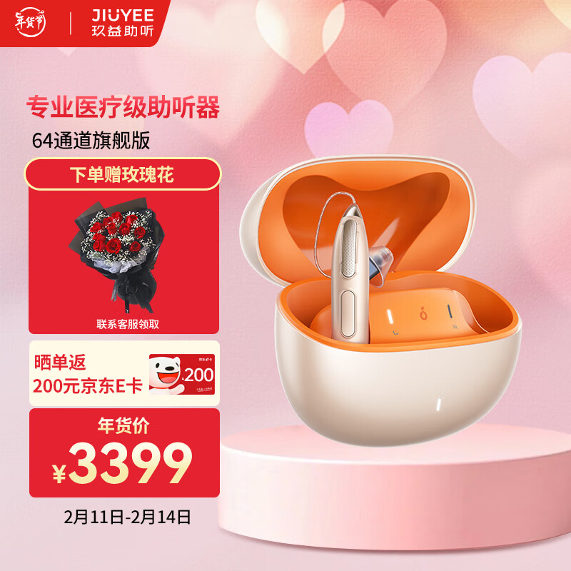JIUYEE玖益 蓝牙高清智能助听器年货节日礼物送家人老年人专用重度耳聋耳机64通道 脂玉金(左耳)价格:4199.00元!
