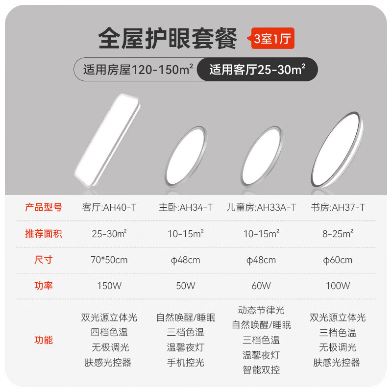 孩视宝【三室一厅】护眼吸顶灯客厅大灯儿童房卧室灯全光谱灯具套餐价格:7609.00元!