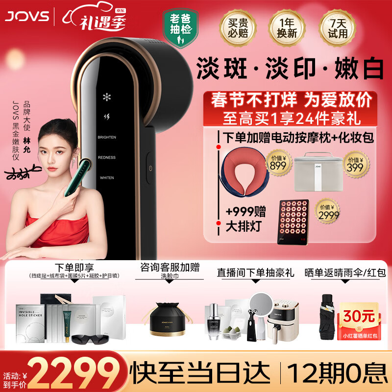 JOVS冰点嫩肤仪家用美容仪器送男女友面罩生日新年情人节礼物 脸部光谱仪淡印亮白淡斑祛红黑羽金价格:2299.00元!